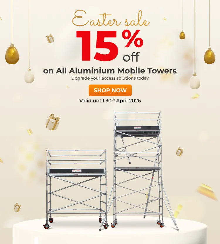 Aluminium scaffolding is a lightweight, sturdy access solution made from aluminium, commonly used in construction, maintenance, and home renovation projects. It is ideal for indoor and outdoor work where height access is needed.